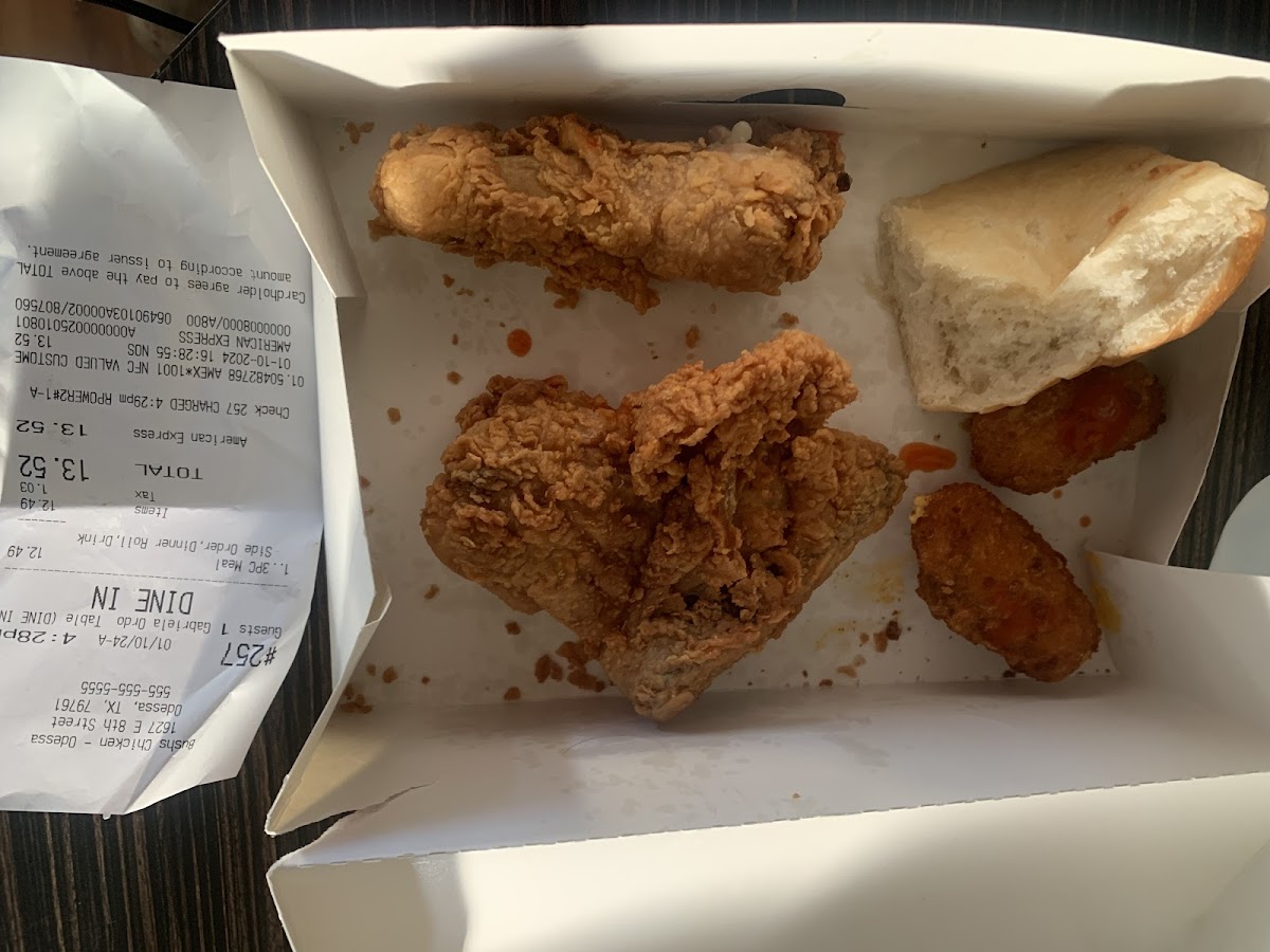 Food was great love the gizzards and the chicken 10/10 would try again the girl with the red hair was so nice and had amazing service
